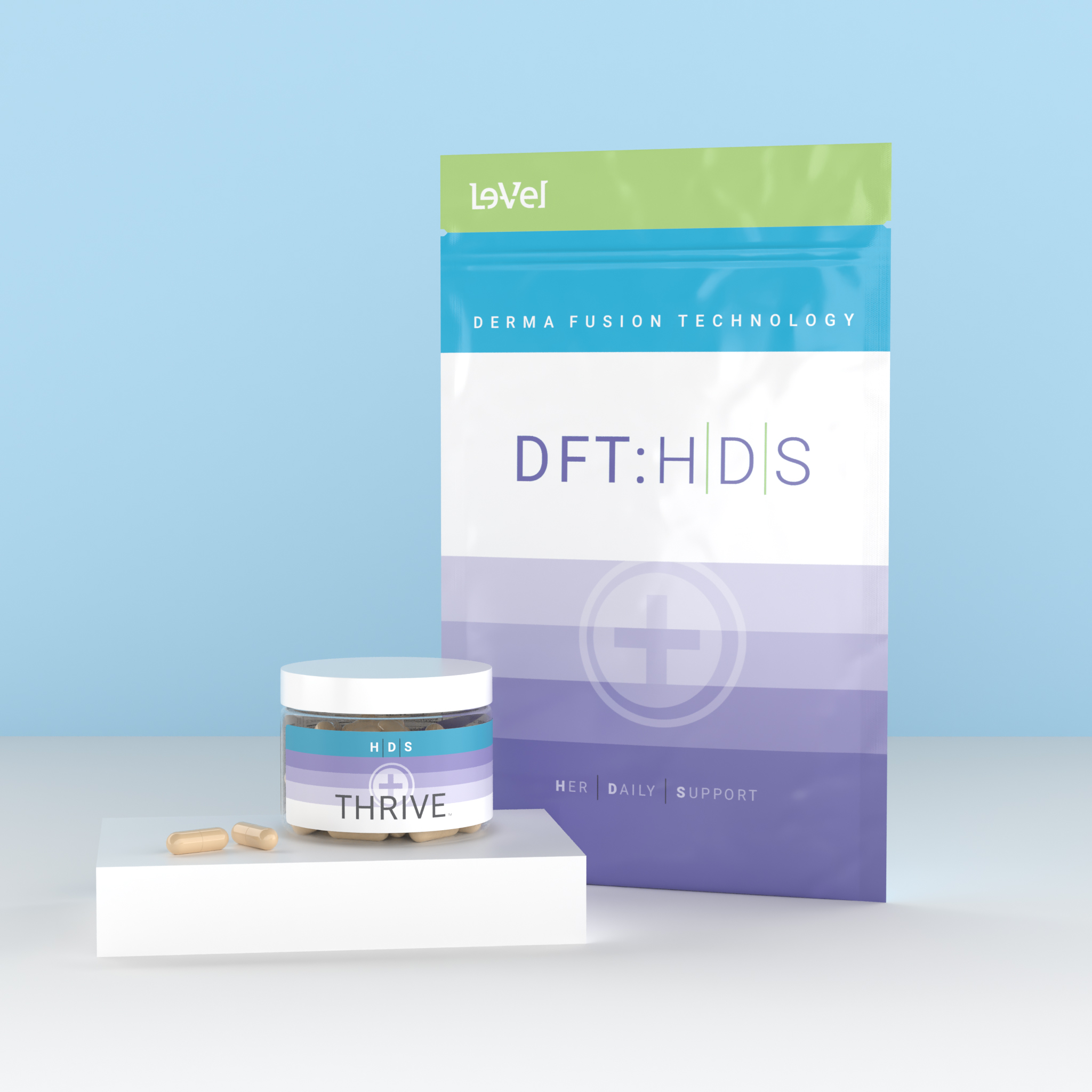 THRIVE Her Daily Support feminine health supplements and skincare DFT help you look and feel your best from the refreshing start of your day through to a peaceful night time. This AM/PM Kit includes HDS premium capsules and Cosmetic Derma Fusion Technology both designed to support & balance the female system and appearance.